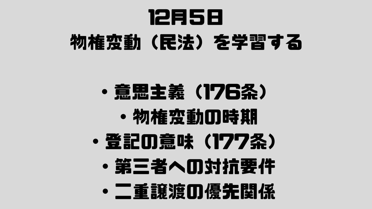今日のメインテーマは、民法の中でも特に重要な「物権変動」でした。