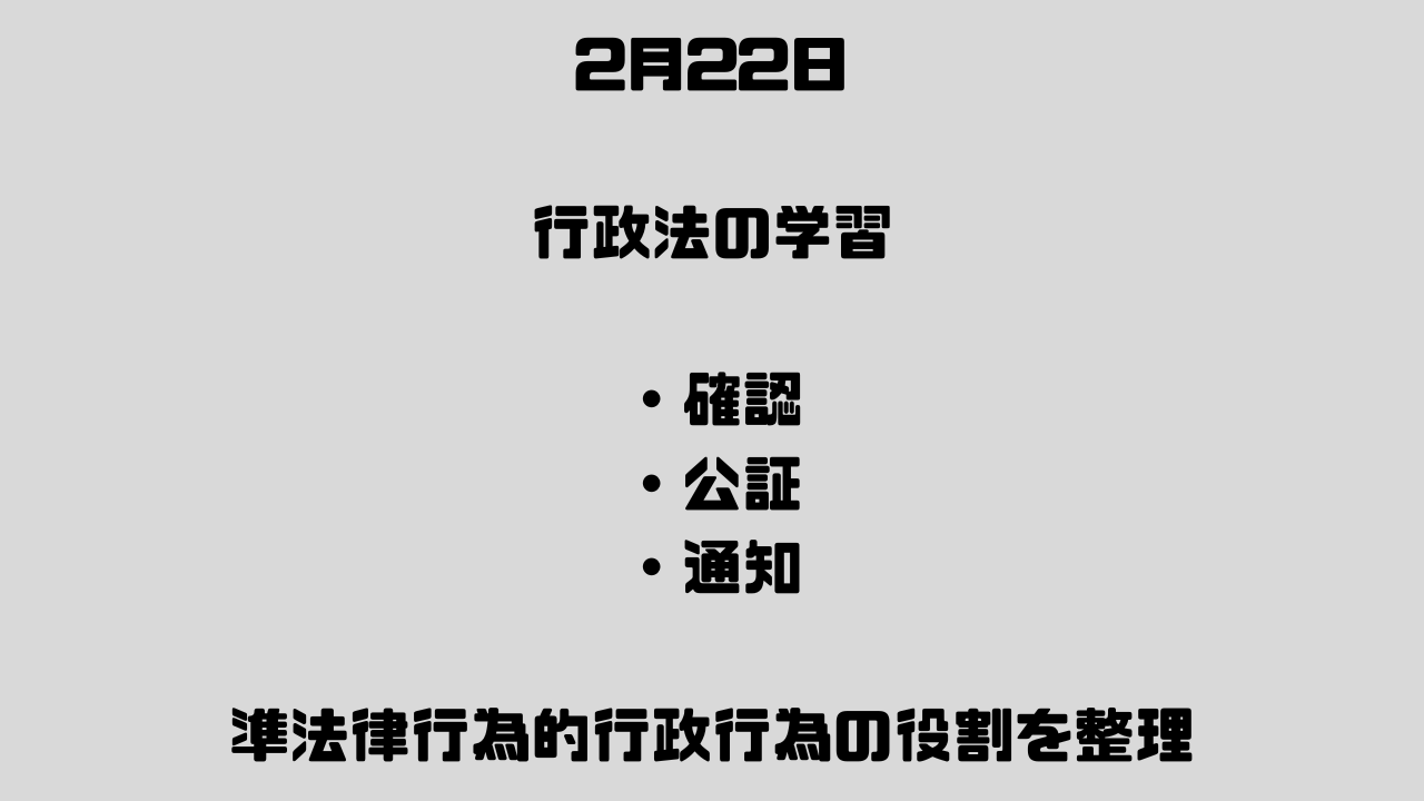 今日は、行政庁の意思(~したいという思い)とは関係なく、一定の判断や認定に対して法律が直接効果を発生させる準法律行為的行政行為について整理しました。